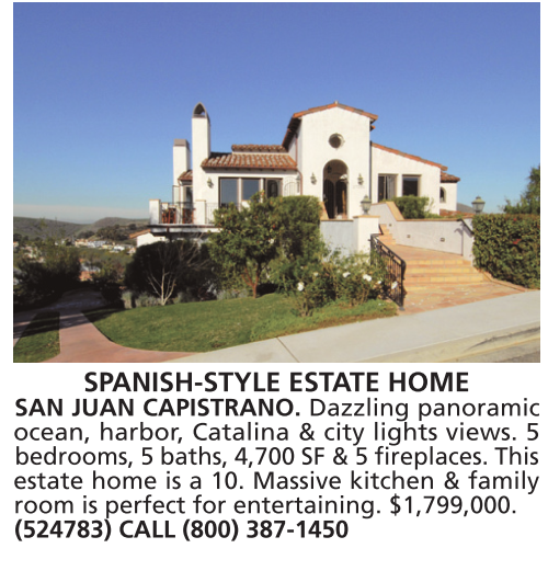 ocean, harbor, Catalina & city lights views. 5 bedrooms, 5 baths, 4,700 SF & 5 fireplaces. This estate home is a 10. Massive kitchen & family room is perfect for entertaining. $1,799,000. (524783) CALL (800) 387-1450