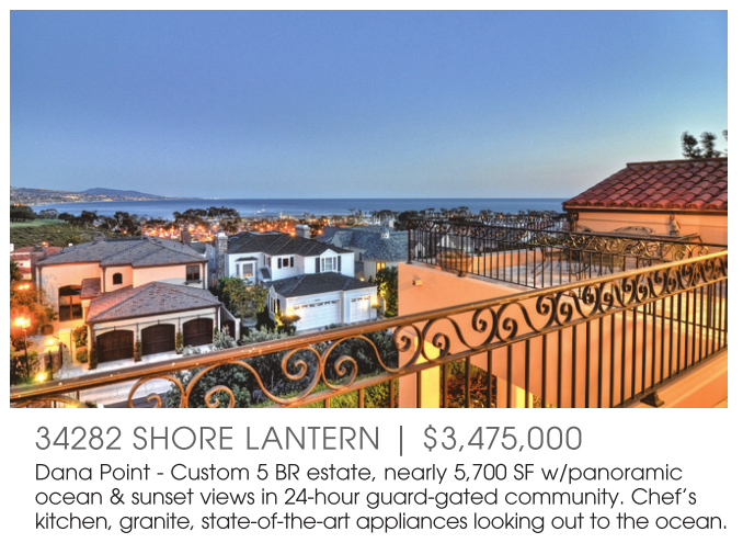 Dana Point - Custom 5 BR estate, nearly 5,700 SF w/panoramic ocean & sunset views in 24-hour guard-gated community. Chef’s kitchen, granite, state-of-the-art appliances looking out to the ocean.