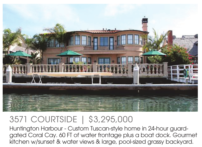 Huntington Harbour - Custom Tuscan-style home in 24-hour guardgated Coral Cay. 60 FT of water frontage plus a boat dock. Gourmet kitchen w/sunset & water views & large, pool-sized grassy backyard.