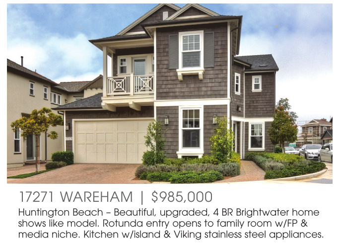 Huntington Beach – Beautiful, upgraded, 4 BR Brightwater home shows like model. Rotunda entry opens to family room w/FP & media niche. Kitchen w/island & Viking stainless steel appliances.