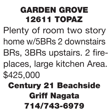 $425,000 Century 21 Beachside Griff Nagata 714/743-6979