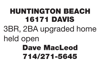 HUNTINGTON BEACH 16171 DAVIS 3BR, 2BA upgraded home held open Dave MacLeod 714/271-5645