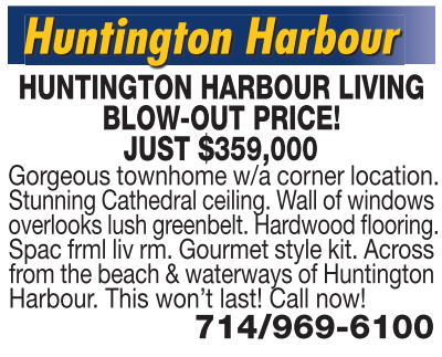 HUNTINGTON HARBOUR LIVING BLOW-OUT PRICE!