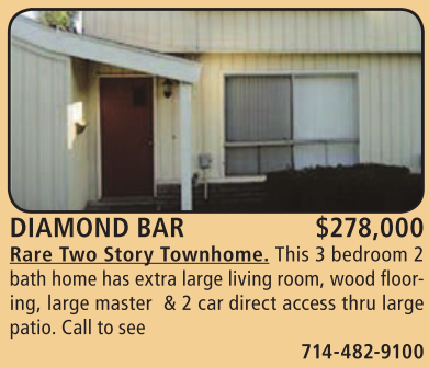 DIAMOND BAR $278,000 Rare Two Story Townhome. This 3 bedroom 2