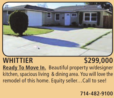 WHITTIER $299,000 Ready To Move In. Beautiful property w/designer