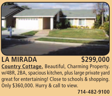 LA MIRADA $299,000 Country Cottage. Beautiful, Charming Property.
