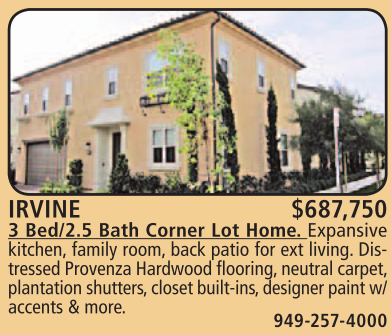 IRVINE $687,750 3 Bed/2.5 Bath Corner Lot Home. Expansive