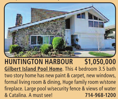 HUNTINGTON HARBOUR $1,050,000 Gilbert Island Pool Home. This 4 bedroom 3.5 bath