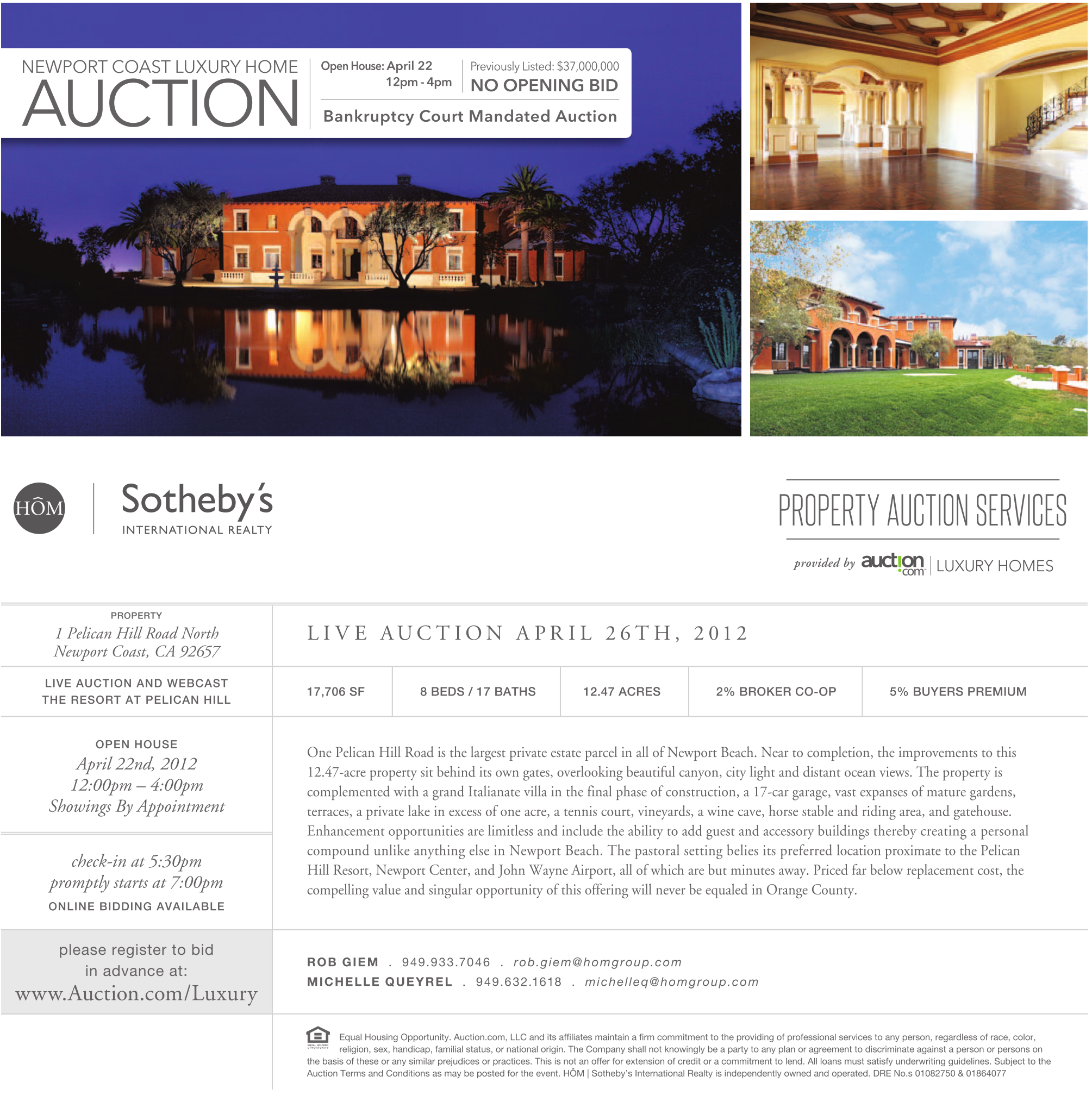 NEWPORT COAST LUXURY HOME Open House: April 22 Previously Listed: $37,000,000 12pm - 4pm NO OPENING BID