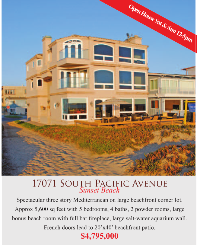 Spectacular three story Mediterranean on large beachfront corner lot.