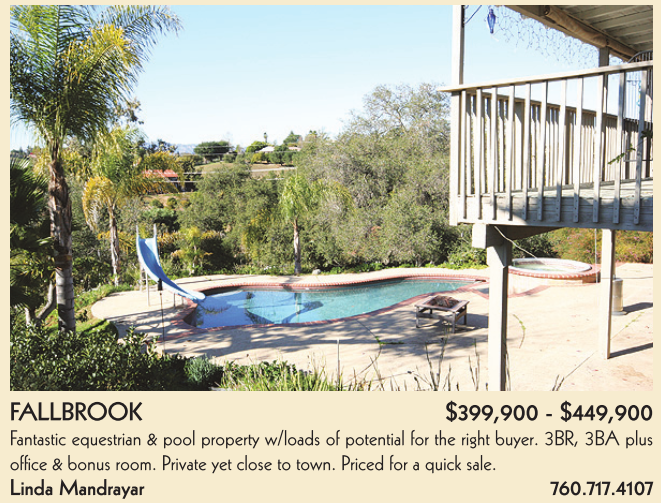 FALLBROOK $399,900 - $449,900 Fantastic equestrian & pool property w/loads of potential for the right buyer. 3BR, 3BA plus