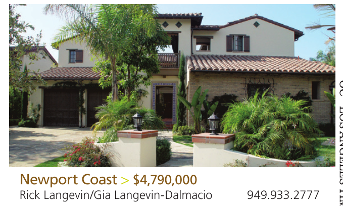 Newport Coast > $4,790,000 Rick Langevin/Gia Langevin-Dalmacio 949.933.2777