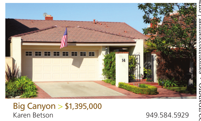 Big Canyon > $1,395,000 Karen Betson 949.584.5929