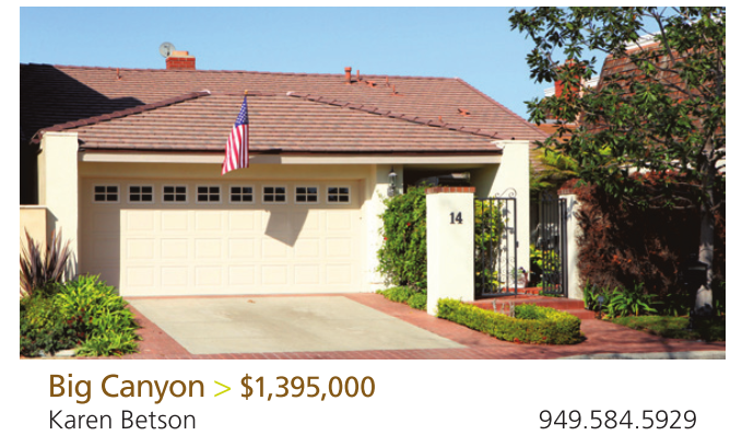 Big Canyon > $1,395,000 Karen Betson 949.584.5929