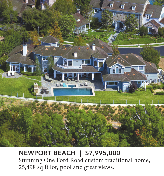 NEWPORT BEACH | $7,995,000 Stunning One Ford Road custom traditional home, 25,498 sq ft lot, pool and great views.