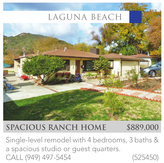 SPACIOUS RANCH HOME $889,000 Single-level remodel with 4 bedrooms, 3 baths & a spacious studio or guest quarters. CALL (949) 497-5454 (525450)