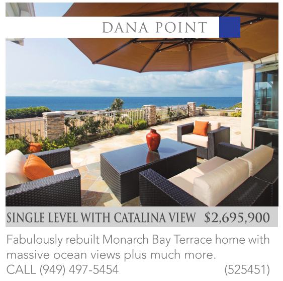 SINGLE LEVEL WITH CATALINA VIEW $2,695,900 Fabulously rebuilt Monarch Bay Terrace home with massive ocean views plus much more. CALL (949) 497-5454 (525451)