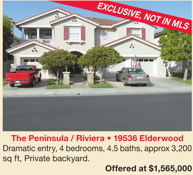 The Peninsula / Riviera • 19536 Elderwood Dramatic entry, 4 bedrooms, 4.5 baths, approx 3,200 sq ft, Private backyard.