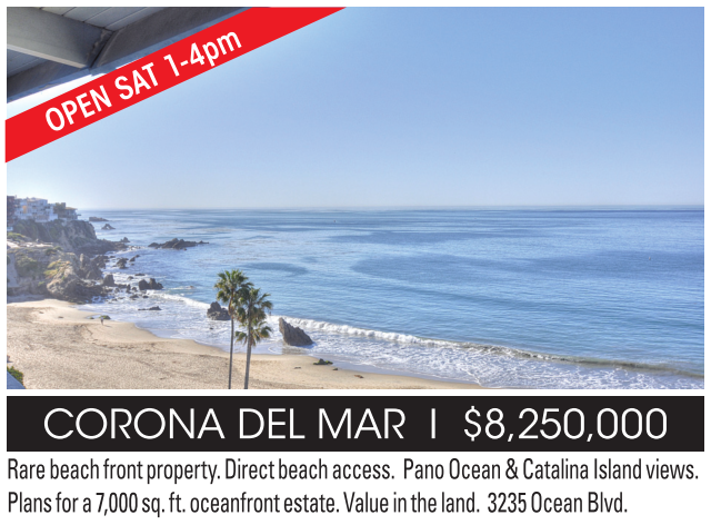 Rare beach front property. Direct beach access. Pano Ocean & Catalina Island views. Plans for a 7,000 sq. ft. oceanfront estate. Value in the land. 3235 Ocean Blvd.