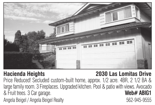 Hacienda Heights 2030 Las Lomitas Drive Price Reduced! Secluded custom-built home, approx. 1/2 acre. 4BR, 2 1/2 BA & large family room. 3 Fireplaces. Upgraded kitchen. Pool & patio with views. Avocado