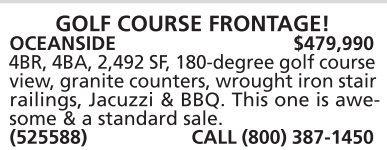4BR, 4BA, 2,492 SF, 180-degree golf course view, granite counters, wrought iron stair