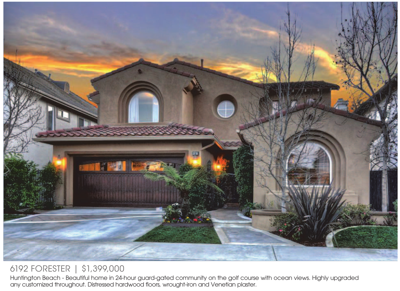 Huntington Beach - Beautiful home in 24-hour guard-gated community on the golf course with ocean views. Highly upgraded any customized throughout. Distressed hardwood floors, wrought-iron and Venetian plaster.