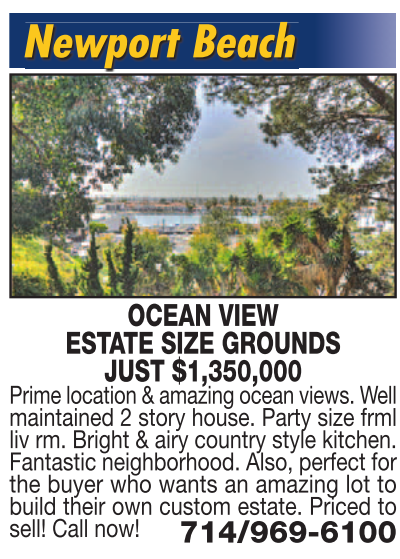 Premium Newport Beach OCEAN VIEW ESTATE SIZE GROUNDS JUST $1,350,000 Prime location & amazing ocean views. Well maintained 2 story house. Party size frml liv rm. Bright & airy country style kitchen. Fantastic neighborhood. Also, perfect for the buyer who wants an amazing lot to build their own custom estate. Priced to sell! Call now! 714/969-6100