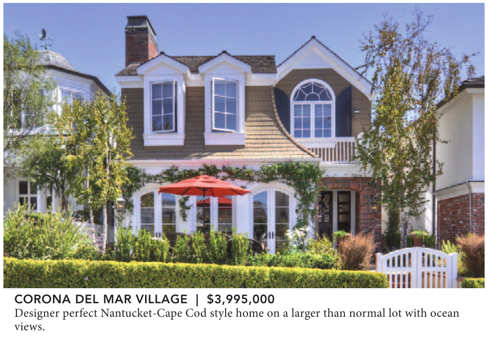 CORONA DEL MAR VILLAGE | $3,995,000 Designer perfect Nantucket-Cape Cod style home on a larger than normal lot with ocean views.
