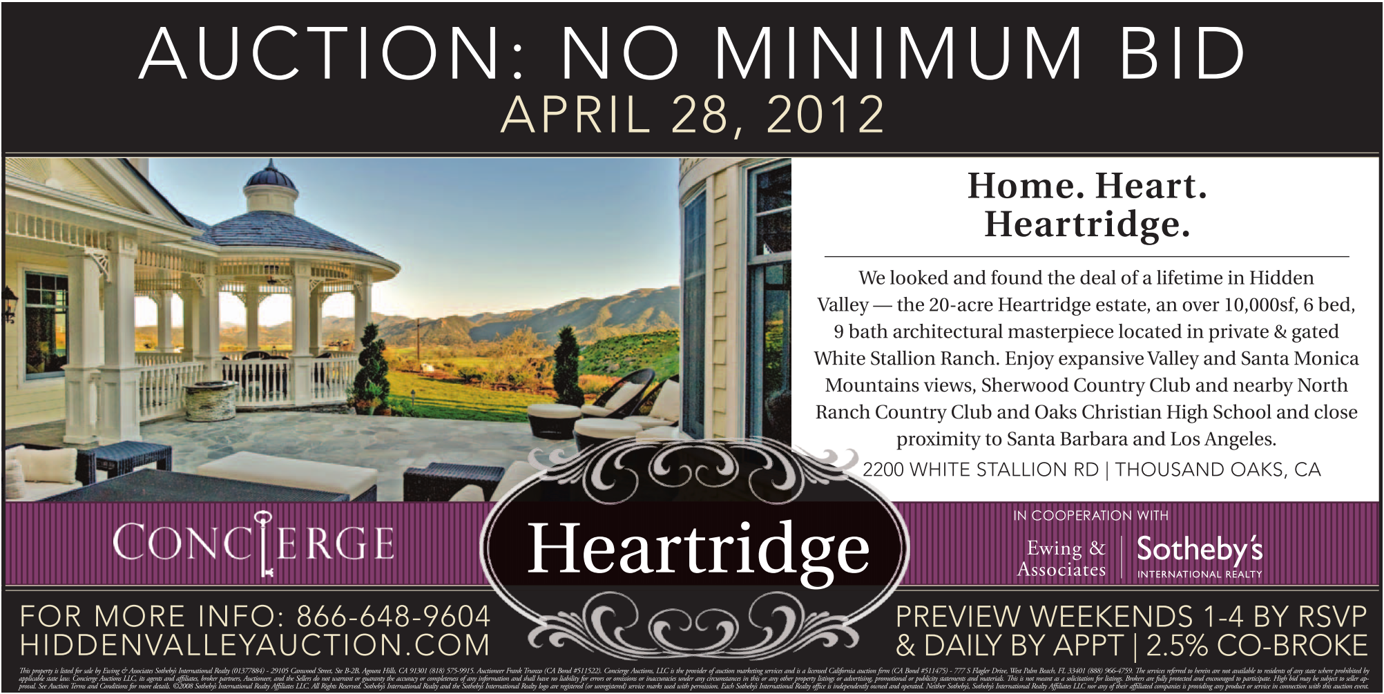 We looked and found the deal of a lifetime in Hidden Valley — the 20-acre Heartridge estate, an over 10,000sf, 6 bed, 9 bath architectural masterpiece located in private & gated White Stallion Ranch. Enjoy expansive Valley and Santa Monica Mountains views, Sherwood Country Club and nearby North Ranch Country Club and Oaks Christian High School and close proximity to Santa Barbara and Los Angeles.