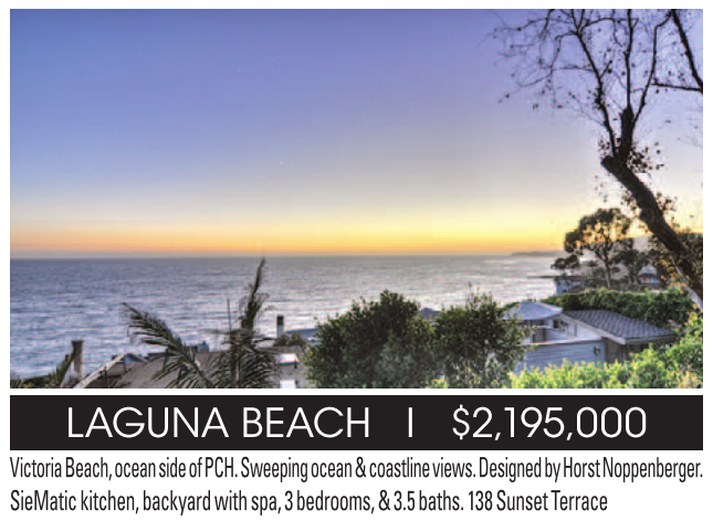 Victoria Beach, ocean side of PCH. Sweeping ocean & coastline views. Designed by Horst Noppenberger. SieMatic kitchen, backyard with spa, 3 bedrooms, & 3.5 baths. 138 Sunset Terrace