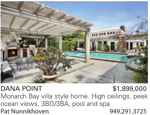ocean views, 3BD/3BA, pool and spa. Pat Nunnikhoven 949.291.3725