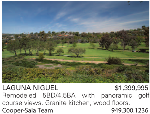 course views. Granite kitchen, wood floors. Cooper-Saia Team 949.300.1236