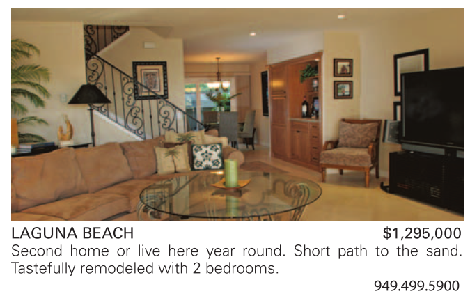 LAGUNA BEACH $1,295,000 Second home or live here year round. Short path to the sand. Tastefully remodeled with 2 bedrooms.