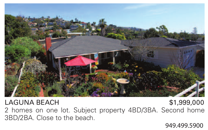 LAGUNA BEACH $1,999,000 2 homes on one lot. Subject property 4BD/3BA. Second home 3BD/2BA. Close to the beach.