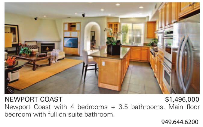 NEWPORT COAST $1,496,000 Newport Coast with 4 bedrooms + 3.5 bathrooms. Main floor bedroom with full on suite bathroom.