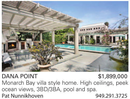 ocean views, 3BD/3BA, pool and spa. Pat Nunnikhoven 949.291.3725