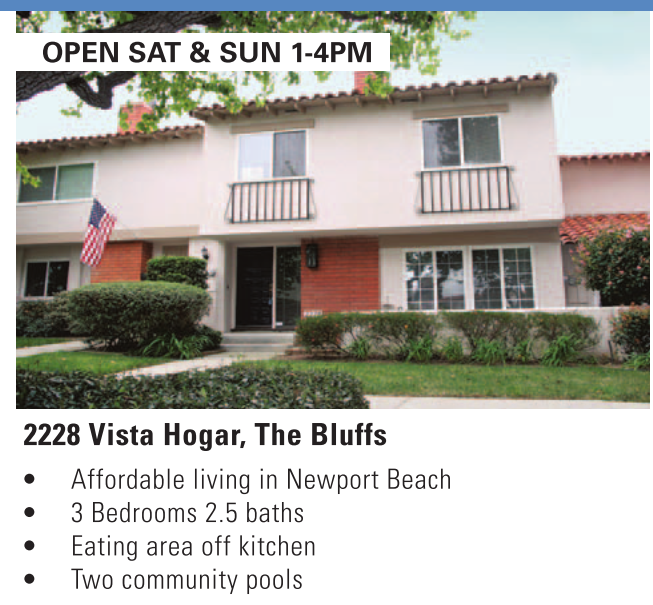 2228 Vista Hogar, The Bluffs • Affordable living in Newport Beach • 3 Bedrooms 2.5 baths • Eating area off kitchen • Two community pools