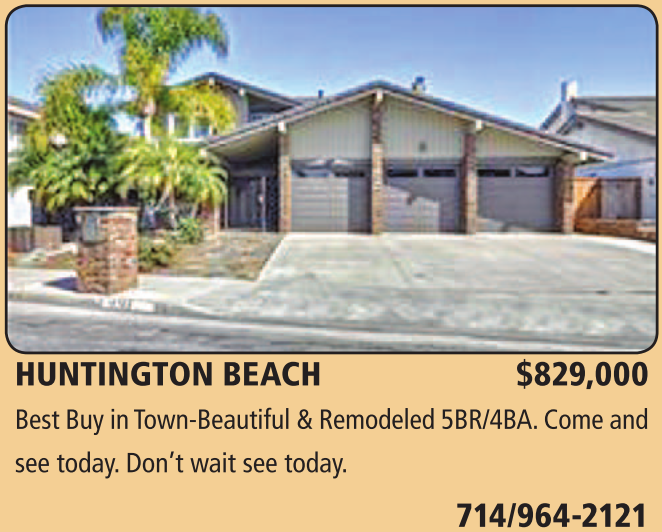 HUNTINGTON BEACH $829,000 Best Buy in Town-Beautiful & Remodeled 5BR/4BA. Come and see today. Don’t wait see today.