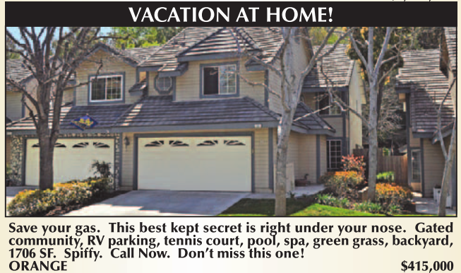 Save your gas. This best kept secret is right under your nose. Gated community, RV parking, tennis court, pool, spa, green grass, backyard, 1706 SF. Spiffy. Call Now. Don’t miss this one! ORANGE $415,000
