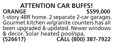 ORANGE $599,000 1-story 4BR home. 2 separate 2-car garages.