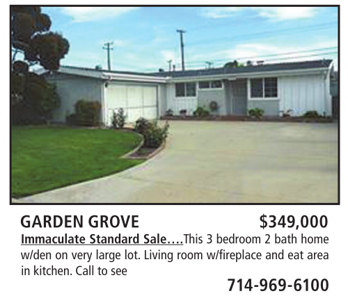 GARDEN GROVE $349,000 Immaculate Standard Sale….This 3 bedroom 2 bath home