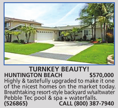 HUNTINGTON BEACH $570,000 Highly & tastefully upgraded to make it one of the nicest homes on the market today. Breathtaking resort-style backyard w/saltwater Pebble Tec pool & spa + waterfalls. (526865) CALL (800) 387-7940
