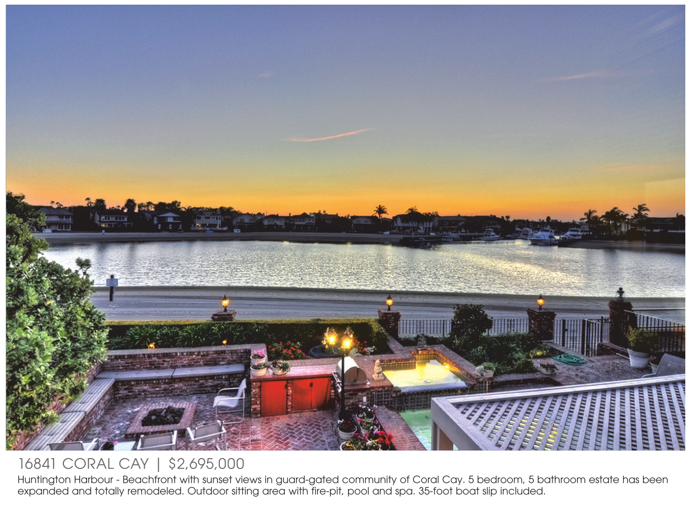 Huntington Harbour - Beachfront with sunset views in guard-gated community of Coral Cay. 5 bedroom, 5 bathroom estate has been expanded and totally remodeled. Outdoor sitting area with fire-pit, pool and spa. 35-foot boat slip included.