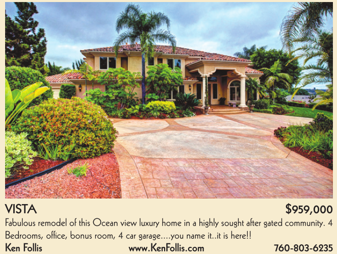 VISTA $959,000 Fabulous remodel of this Ocean view luxury home in a highly sought after gated community. 4