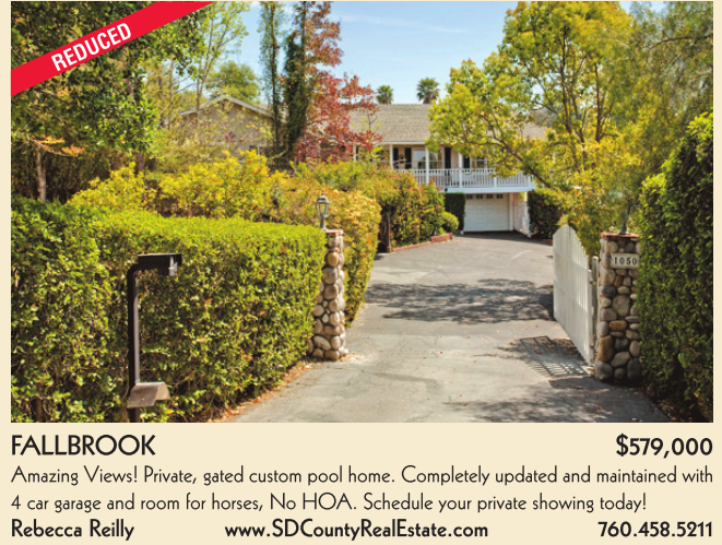 4 car garage and room for horses, No HOA. Schedule your private showing today! Rebecca Reilly www.SDCountyRealEstate.com 760.458.5211