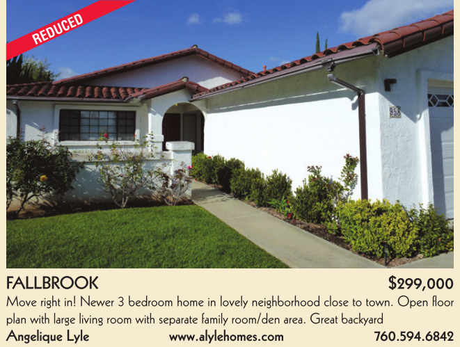 FALLBROOK $299,000 Move right in! Newer 3 bedroom home in lovely neighborhood close to town. Open floor
