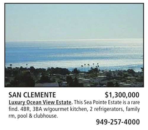 SAN CLEMENTE $1,300,000 Luxury Ocean View Estate. This Sea Pointe Estate is a rare find. 4BR, 3BA w/gourmet kitchen, 2 refrigerators, family rm, pool & clubhouse.