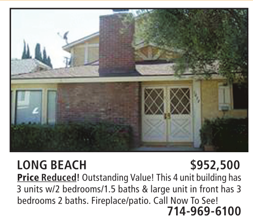 LONG BEACH $952,500 Price Reduced! Outstanding Value! This 4 unit building has 3 units w/2 bedrooms/1.5 baths & large unit in front has 3 bedrooms 2 baths. Fireplace/patio. Call Now To See!