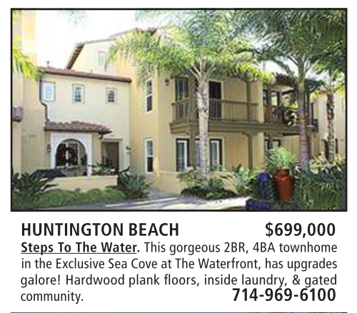 HUNTINGTON BEACH $699,000 Steps To The Water. This gorgeous 2BR, 4BA townhome in the Exclusive Sea Cove at The Waterfront, has upgrades galore! Hardwood plank floors, inside laundry, & gated community. 714-969-6100
