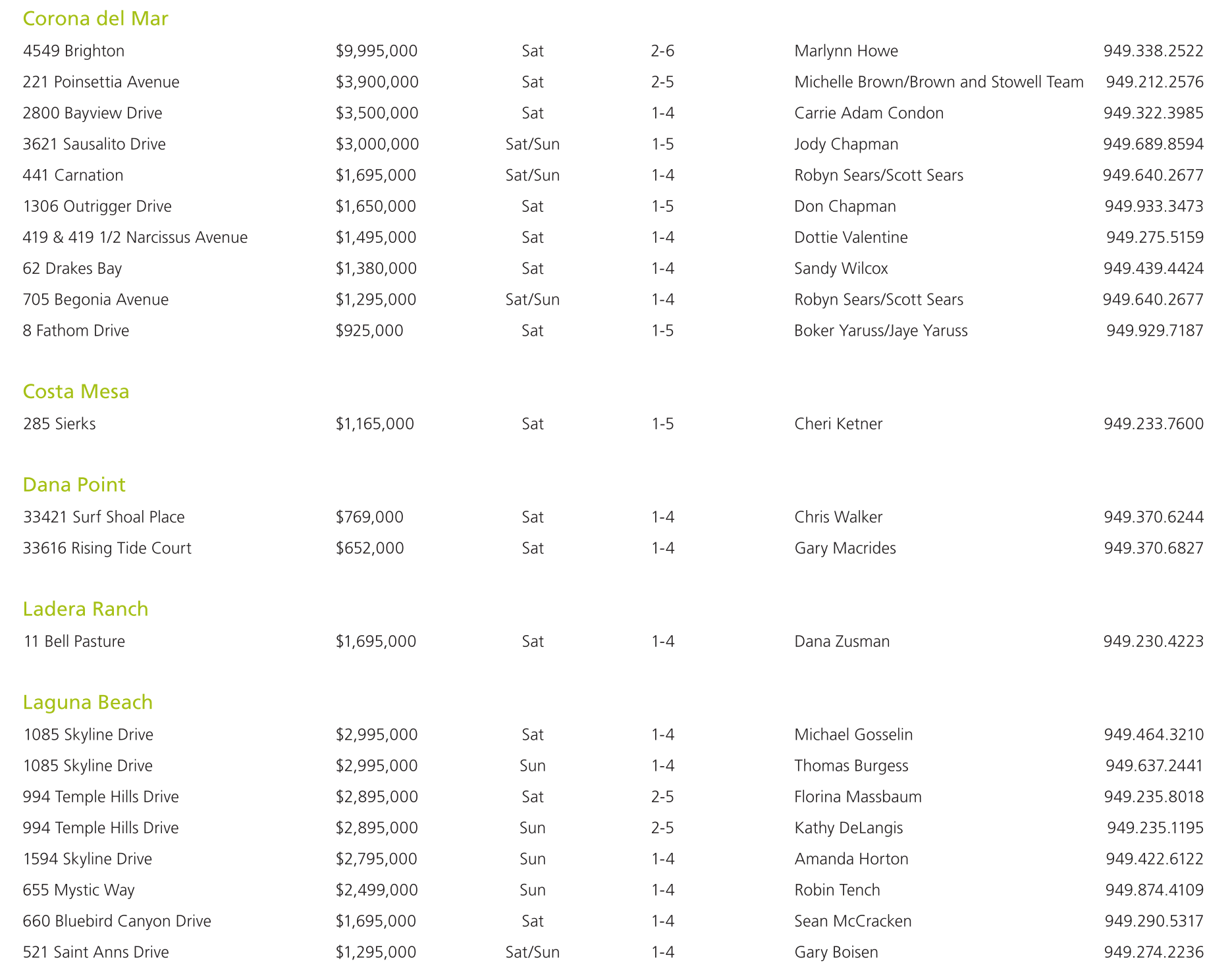 8 Fathom Drive $925,000 Sat 1-5 Boker Yaruss/Jaye Yaruss 949.929.7187
